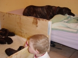 Doggenartige kurzhaarige Molosserrasse, übermittelgroß, gestreckt,