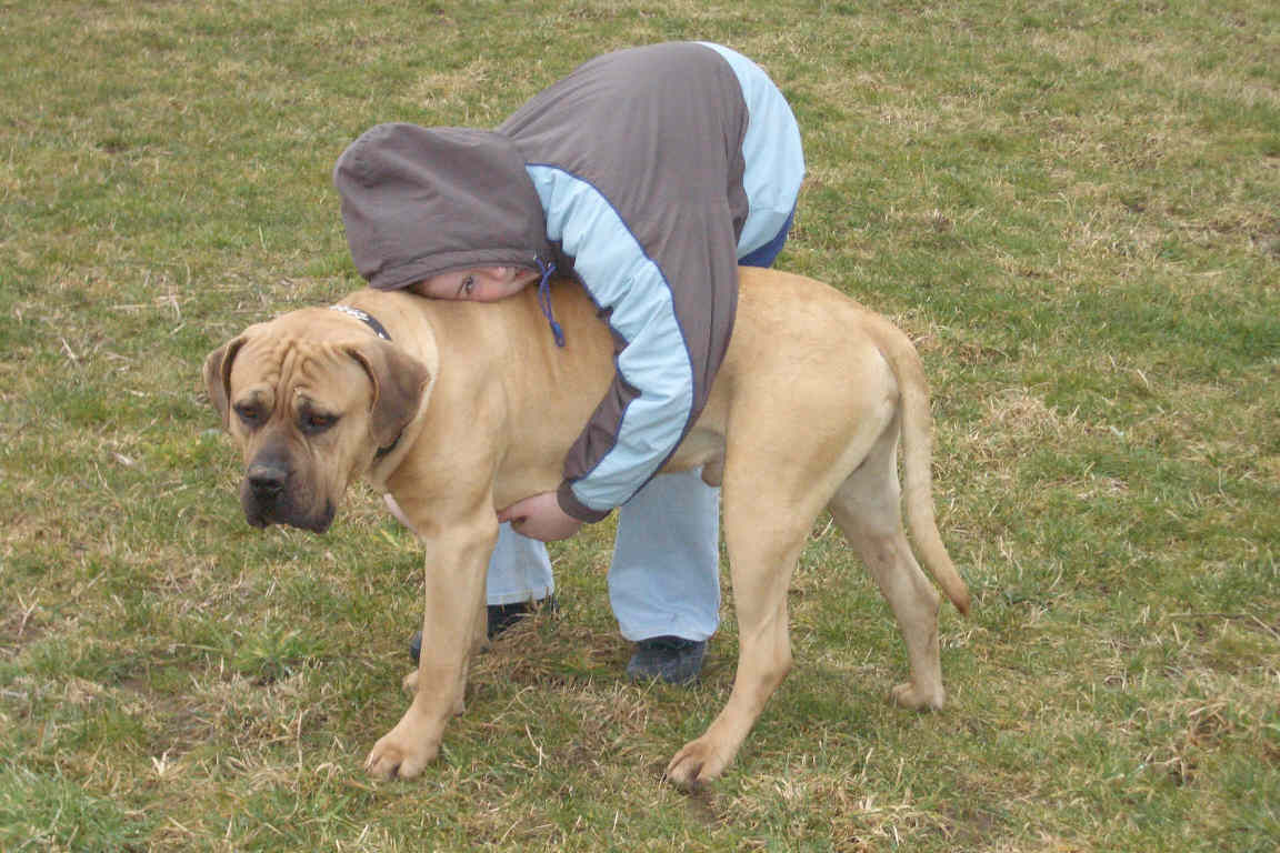 sehr muskulös und leistungsfähig, brachyzephaler Typ ohne molossoide